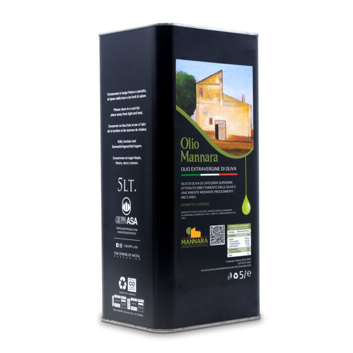 Dopo l’apertura della lattina, si consiglia di travasare l’olio in bottiglie per garantire una migliore conservazione.